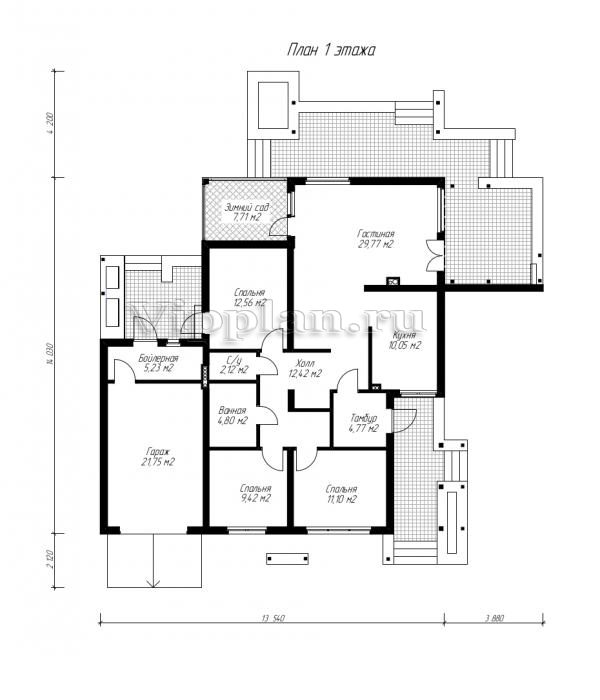 | Размеры дома: | 14.03м×13.54м |