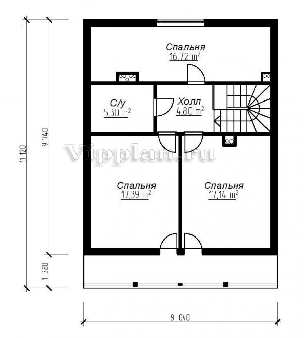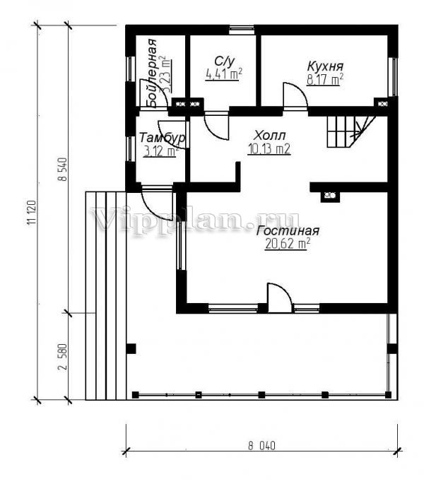 | Размеры дома: | 11.12м×8.04м |