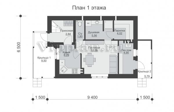 | Размеры дома: | 9.4м×6.5м |